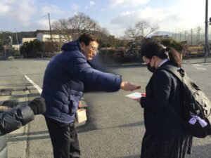 【高校3・6年生】大学入学共通テスト会場で受験生を激励! 2026.01.24 大学入試共通テスト受験生を試験会場前で激励しました。 入場する前の受験生に、教員からの手書きメッセージ入りキットカットを配付しました。 カテゴリー 全体 (93) 高校イベント (25) 中学校イベント (40) 高校 (206) 中学校 (73) 部活動 (156) 保護者 (7) その他 (4) アーカイブ (416) アーカイブ 2025年度 2026年1月 (9) 2025年12月 (7) 2025年11月 (20) 2025年10月 (13) 2025年9月 (21) 2025年8月 (18) 2025年7月 (16) 2025年6月 (14) 2025年5月 (7) 2025年4月 (13) 2024年度 2023年度 2022年度 2021年度 2019年度 2018年度 2017年度