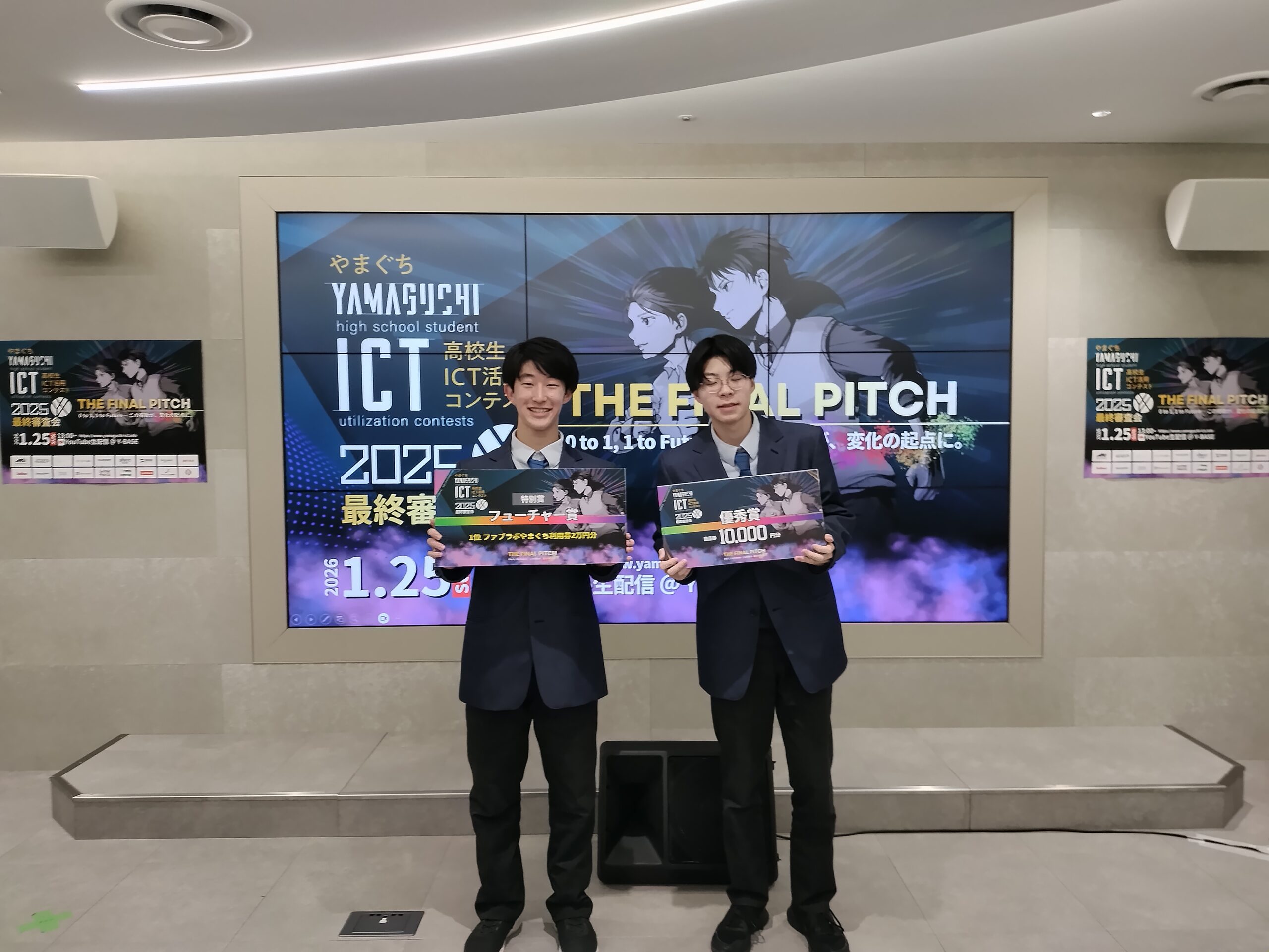1月25日(日)に開催された「やまぐち高校生ICT活用コンテスト2025最終審査会」に、本校生徒4名が出場しました。